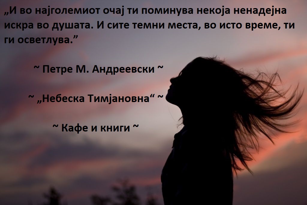 Романот ме воодушеви и длабоко ме погоди и трогна, на повеќе нивоа и од повеќе причини. Затоа, денес, кога одбележуваме годишнина од смртта на Петре М. Андреевски, во продолжение можете да прочитате неколку прекрасни мисли од романот. Ги има несомнено многу и се надевам дека во следниот период ќе ја надополнам оваа објава, но и овие се доволни за останат запомнети, за да бидат споделувани и за да го испочитуваат споменот на Петре!
