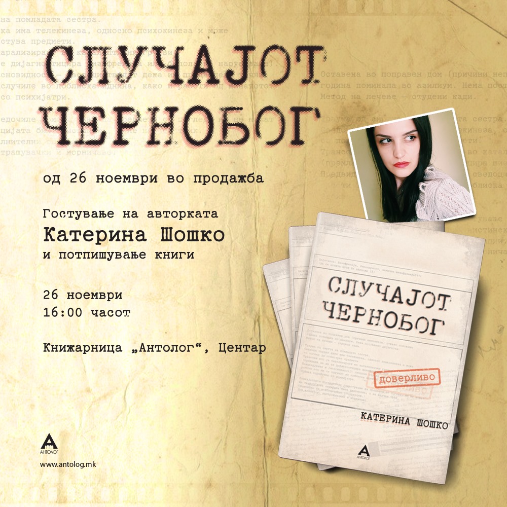 Катерина Шошко се појави на книжевната сцена со нејзиниот одличен трилер „Крвава месечина“ (за кој и пишував на блогот). Сега таа се враќа со својот нов роман „Случајот Чернобог“ кој ветува дека ќе биде подеднакво интересен како и претходниот.