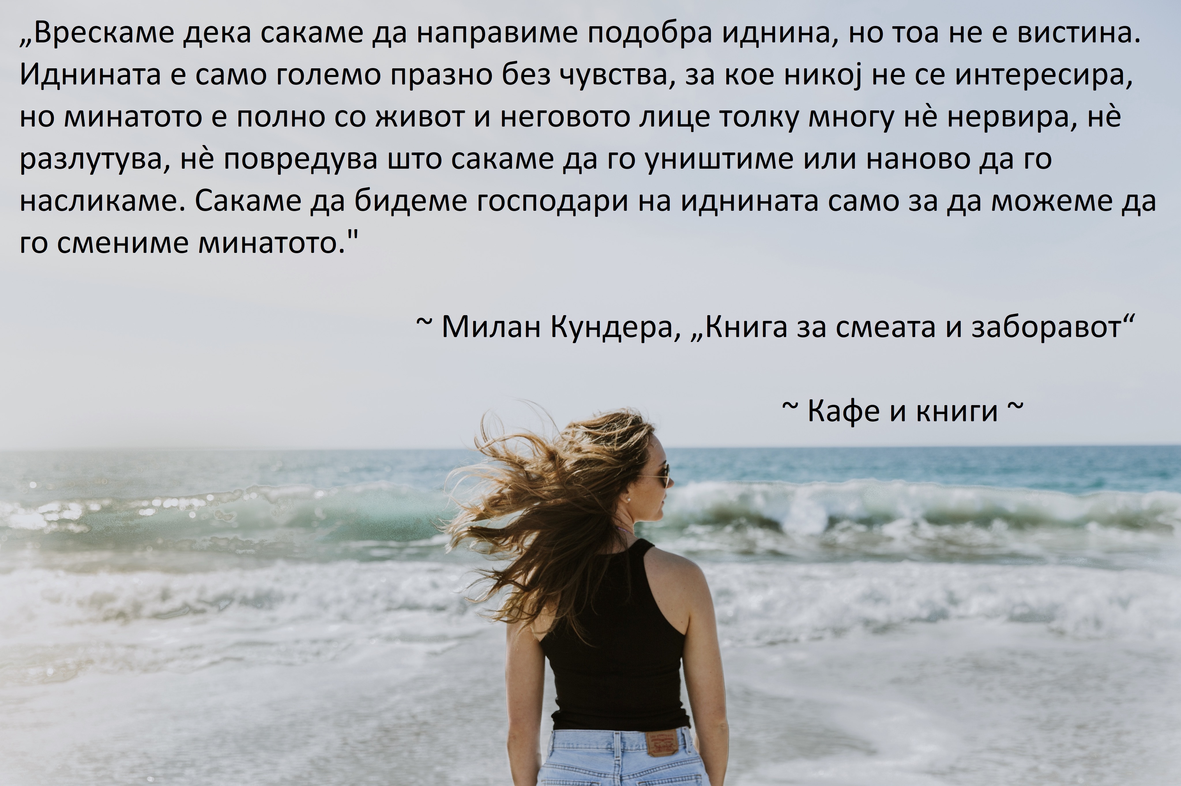 Одамна не сме ја раздрмале оваа одлична рубрика, па затоа денес на блогот одбрав една одлична мисла од една одлична книга од еден одличен писател. Милан Кундера е еден од најдобрите живи писатели, кој со неговите дела „Неподносливата леснотија на постоењето“, „Шега“, „Книга за смеата и заборавот“ и уште многу други, допира длабоко до срцето и душата на читателот. За него веќе сум пишувала на блогот (тука и тука), а денес една прекрасна мисла од „Книга за смеата и заборавот“ е избрана за „Мисла на денот“. Уживајте и споделувајте!