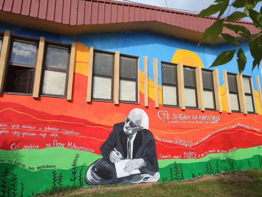 „Те љубам на кирилица“ – Ова е главната порака на прекрасниот мурал посветен на еден од најзначајните македонски писатели – Петре М. Андреевски.