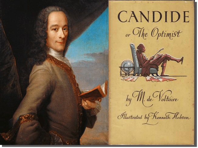 Начинот на кој Волтер прави да размислиме малку подлабоко за неоснованиот оптимизам и за ставот дека „ова е најдобриот од сите можни светови“ е нешто што не може да ве остави рамнодушни. Самиот факт дека во книгата ние читаме за тешкотиите низ кои минува Кандид, но и останатите ликови, кои се ужасни и многу често трагични и грозоморни, прави да бидеме наклонети да ја отфрлиме премисата дека „сè е најдобро“, но и да сочувствуваме со судбината на Кандид, кој е наивен и простодушен и сака да верува во тие хипотези, иако самиот е сведок како она што го учел и она во коешто бил уверен голем дел од животот не се совпаѓа со она што го гледа во реалниот живот. Тој сведочи како неговиот учител и ментор Панглос е обесен од страна на Инквизицијата само заради обична дискусија и неговото срце се крши и тука ја гледаме спротиставеноста на оптимизмот наспроти бедотијата и суровоста на светот.