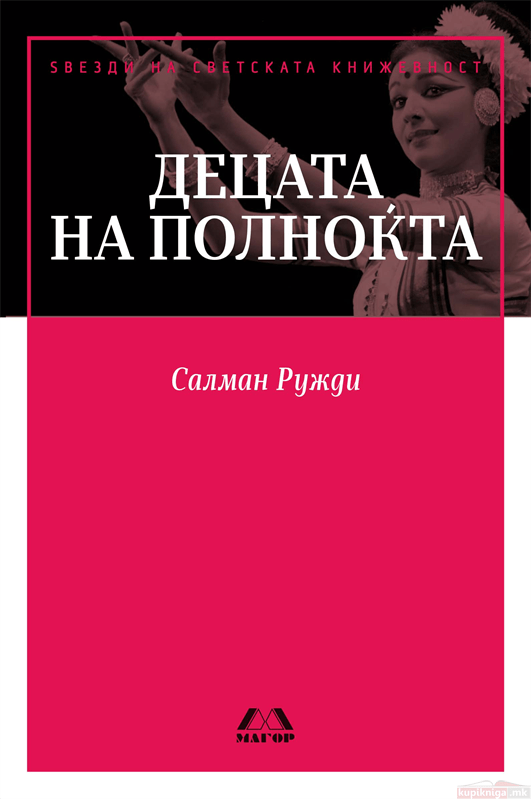 (Насловната корица на македонското издание на „Деца на полноќта“, во издание на „Магор“)