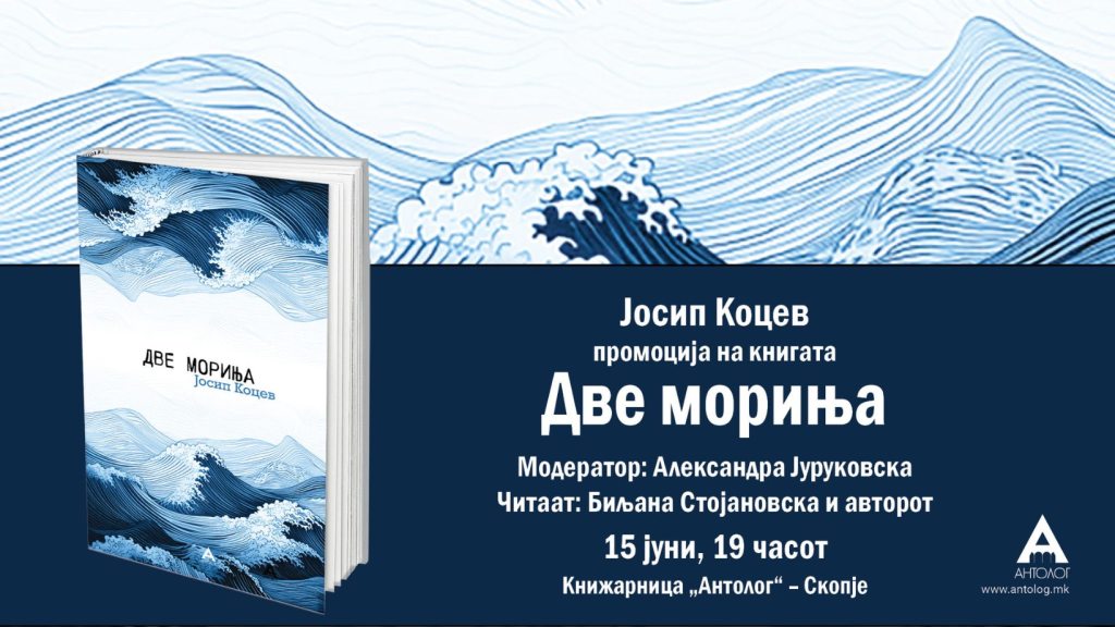 Денес ќе се случи промоцијата на новата поетска книга на поетот Јосип Коцев, кој последниве години го привлекува вниманието на читателската публика и е миленик на голем број од домашните љубители на поезијата. Новата стихозбирка се вика „Две мориња“ и денес ќе биде промовирана со почеток од 19 часот во книжарницата „Антолог“ (до средното училиште „Јосип Броз Тито“).
