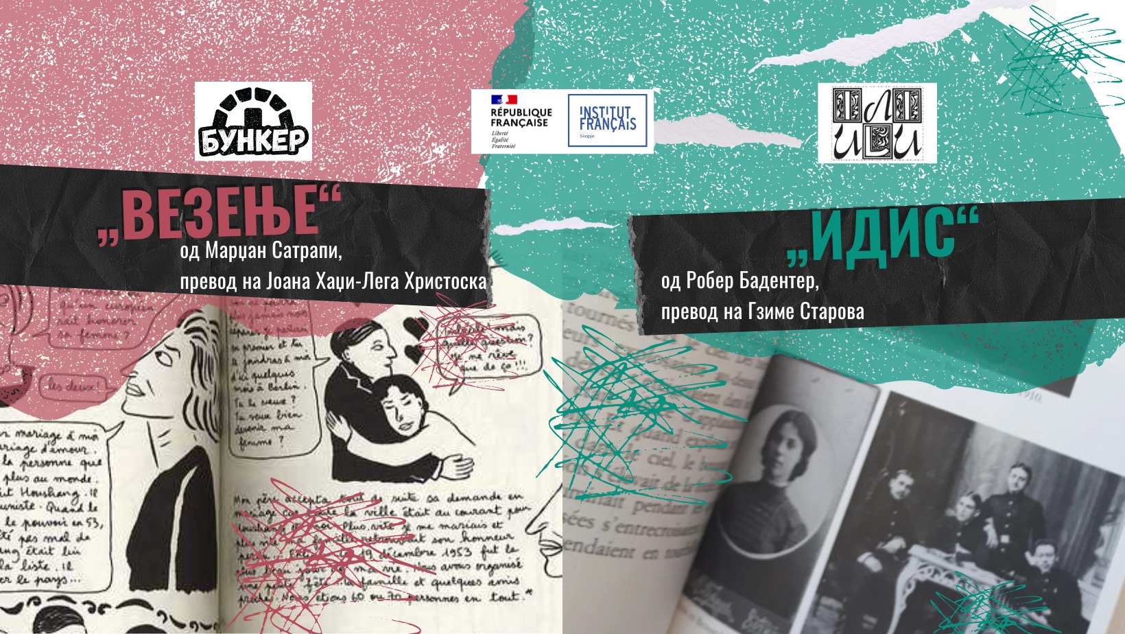 Во четврток (15 февруари), со почеток од 18 часот, во Францускиот институт во Скопје ќе се организира книжевна средба чија главна цел е промоција на македонските преводи на делата „Идис“ од Роберт Бадентер (издание на „Или-Или“) и „Везење“ на Марџан Сатрапи (издание на „Бункер“), оригинално издадени на француски јазик.