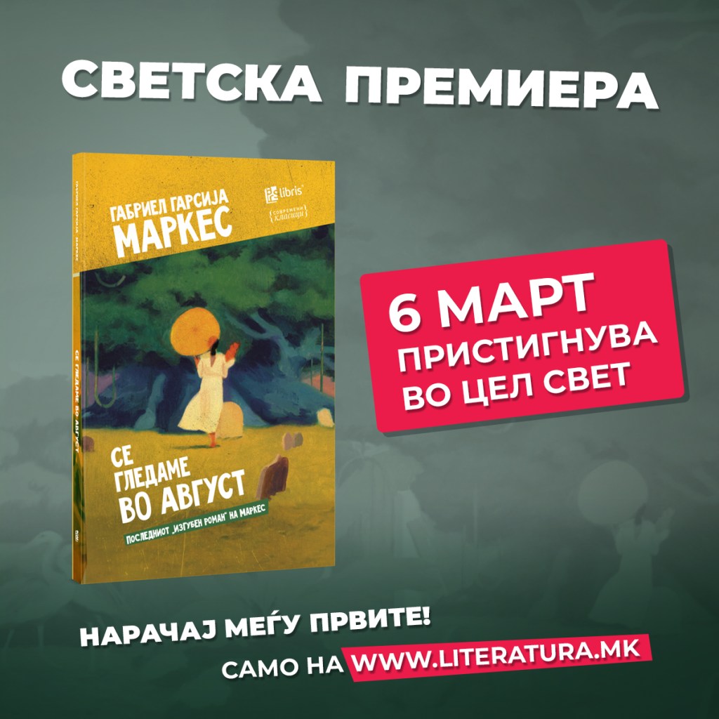 Романот се вика „Се гледаме во август“ и својата светска премиера ќе ја има на 6 март, односно на годишнината од раѓањето на Маркес (6 март 1927 година). Она што навистина радува е што и Македонија е рамо до рамо со останатите држави во овој поглед, односно на 6 март освен што ќе биде достапна ширум светот на повеќе јазици, ќе биде достапна и за македонските читатели на македонски јазик, во издание на „Арс Ламина“.