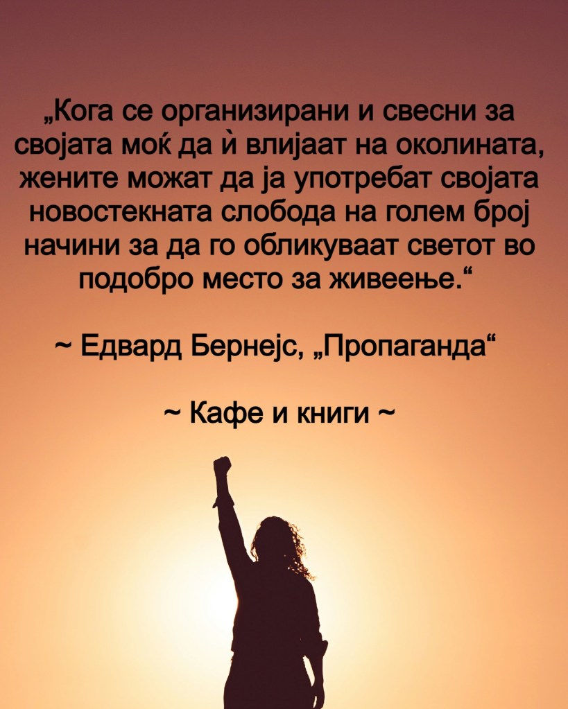 Честит 8 Март! Да се потсетиме на овој ден на вековната борба на жените за рамноправност во сите сфери на животот. Во чест на денот, денешната мисла е од книгата „Пропаганда“ од Едвард Бернејс!