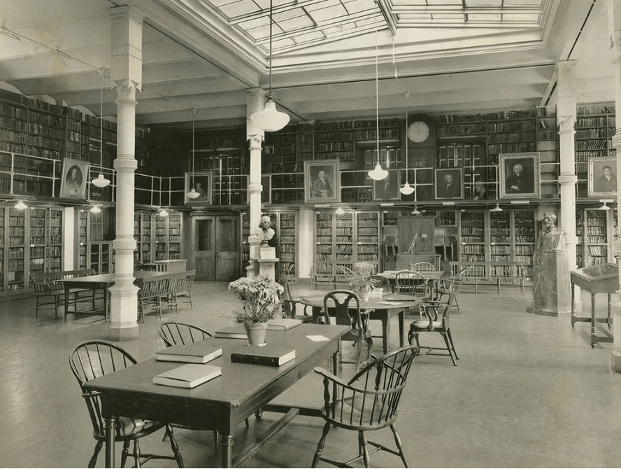 (Читалната на „Библиотечната компанија“ во Филаделфија, околу 1935 година