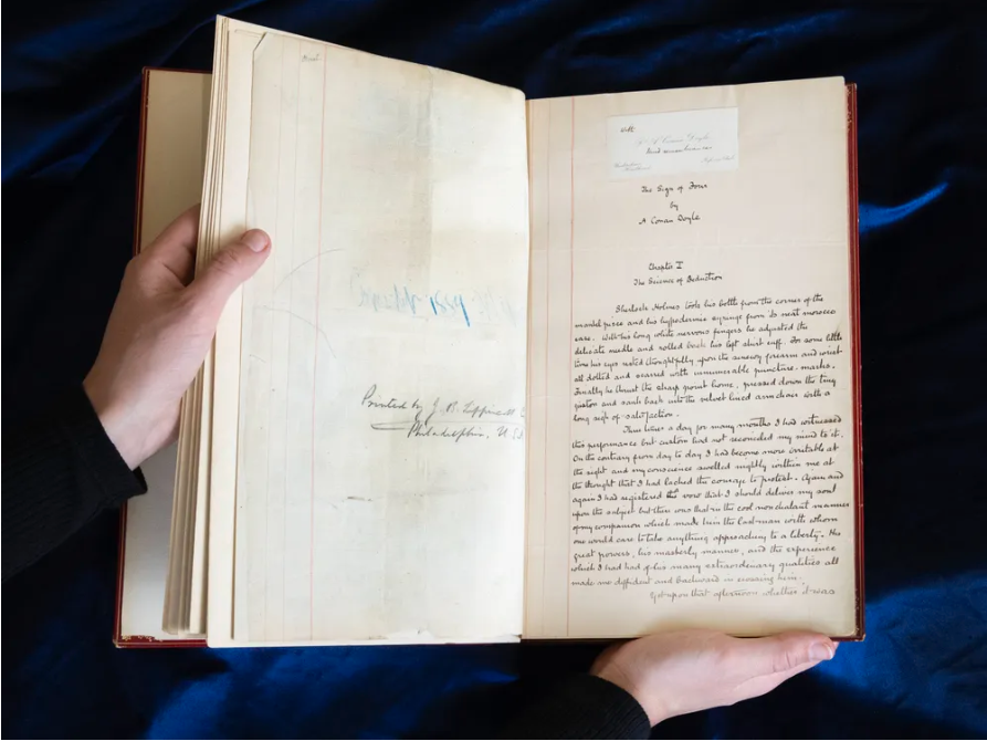 Вториот роман на Артур Конан Дојл за Шерлок Холмс, „Знакот на четворицата“, премиерно бил објавен во списанието „Липинкот“ во 1890 година. Сега, ракописот на авторот на книгата – единствениот примерок што постои – годинава ќе биде ставен на аукција и очекувањата се дека ќе биде продаден за 1,2 милиони долари.