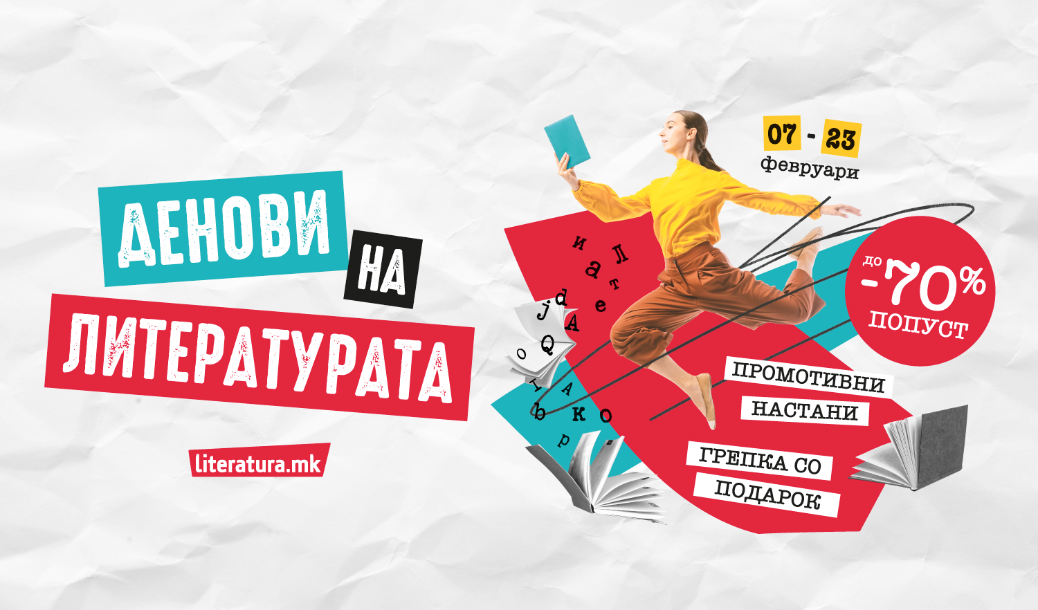 „Денови на литературата“ веќе стана традиционална акција на „Литература.мк“, каде попустите се испреплетуваат со книжевни настани па така и годинава не е исклучок. Од денес, па сè до 27 февруари, во сите книжарници на „Литература.мк“ ќе имате можност да купите книги по намалени цени, а можете и да учествувате во книжевните настани наменети и за најмалите, но и за возрасните.