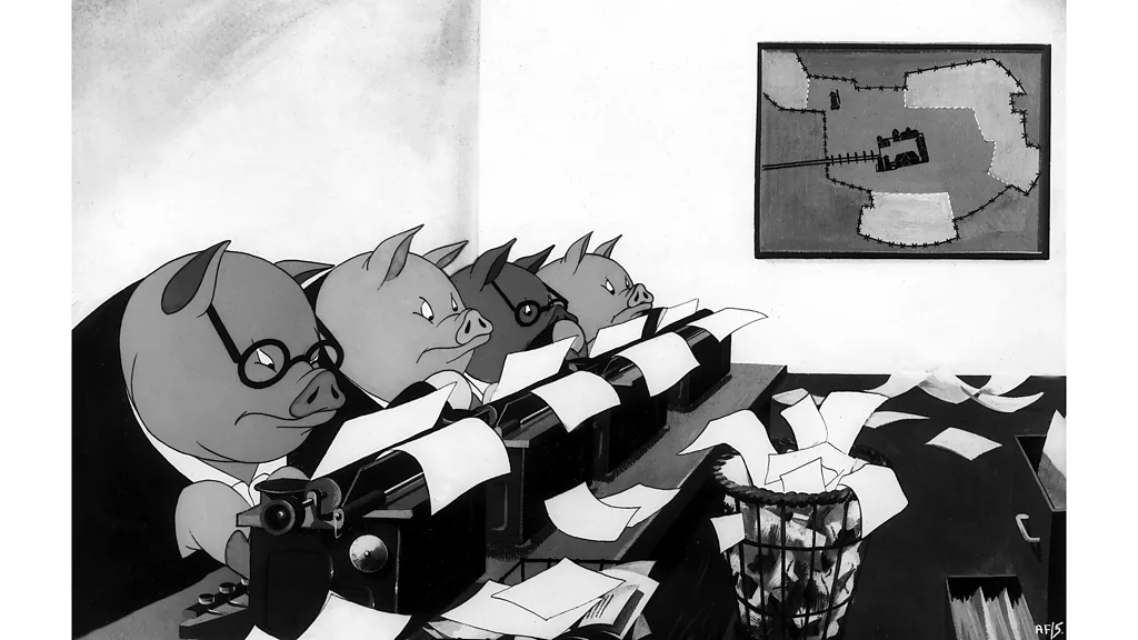 Орвел пишуваше со специфична политичка цел: да ги предупреди читателите за реалноста на сталинизмот. Затоа, „Животинска фарма“ е извонредно дисциплинирана алегорија на историјата на СССР, со клучни личности и настани прецизно отсликани од животните на фармата. Иако поттикнат од вистински гнев кон британската влада, од штедењето, Брегзит, па сè до лошото справување со пандемијата, Бајлс сметал дека хаосот на демократската политика бара пофлексибилен пристап: „Секогаш кога чувствував дека се приближувам премногу до одреден лик или настан, се обидував да најдам начин да се оттргнам од тоа. Орвел многу јасно гледаше што се случуваше во СССР и наоѓаше начин да го опише тоа прилично директно. Влегов во ова речиси од спротивната позиција, сакајќи да развијам разбирање за тоа што се случуваше.“