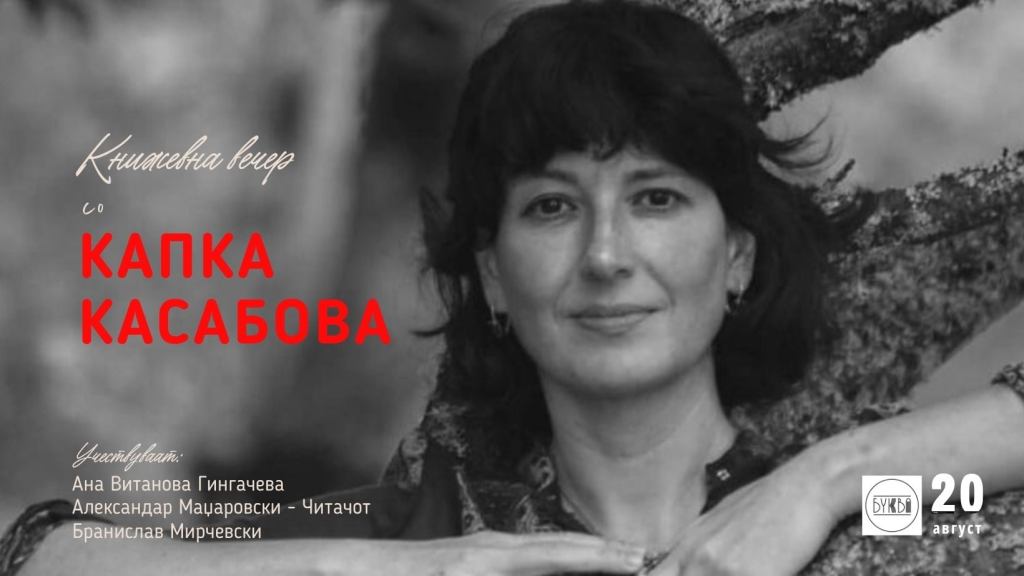 Феноменалната авторка Капка Касабова, најпозната по врвната документаристичко-патеписна проза, доаѓа во Македонија! Вечерва, со почеток од 20 часот, во кафе-книжарницата Буква, ќе имате можност да присуствувате на книжевна вечер со Капка каде Ана Витанова Рингачева и Александар Маџаровски ќе разговараат со Касабова и ќе ги споделат своите импресии за нејзиното пишување и дела. Кон разговорот ќе се придружи и преведувачот на нејзините книги Бранислав Мирчевски.