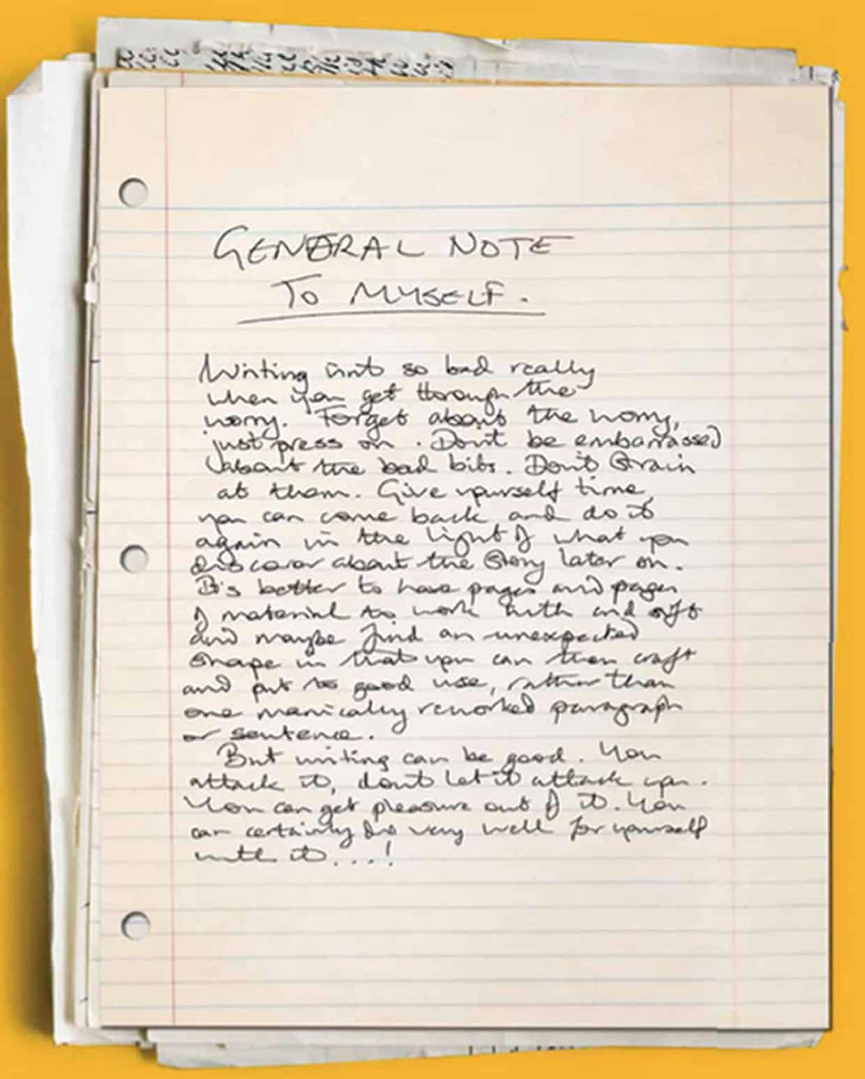 „Пишувањето навистина не е толку лошо кога ќе ја пребродиш грижата. Заборави на грижите, само притисни. Не се срами поради лошите делови. Не се напрегај со нив“, си напишал авторот на „Автостоперскиот водич низ галаксијата“. „Пишувањето може да биде добро. Го напаѓаш, не дозволувај да те нападне. Можеш да добиеш задоволство од тоа. Секако, можеш да направиш многу добро за себеси со тоа!“