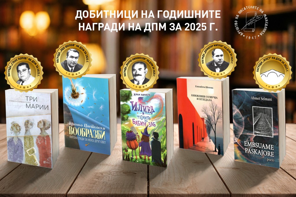 Друштвото на писателите на Македонија вчера на прес-конференција ги објави добитниците на традиционалните годишни награди на ДПМ за 2025 година.