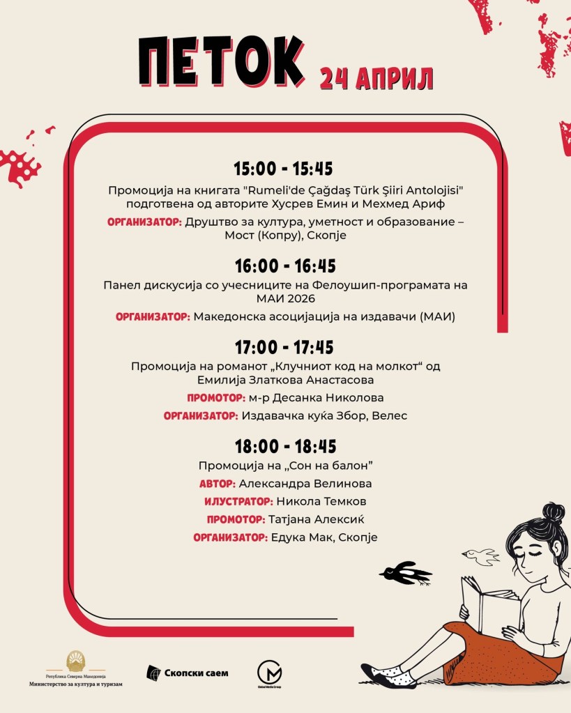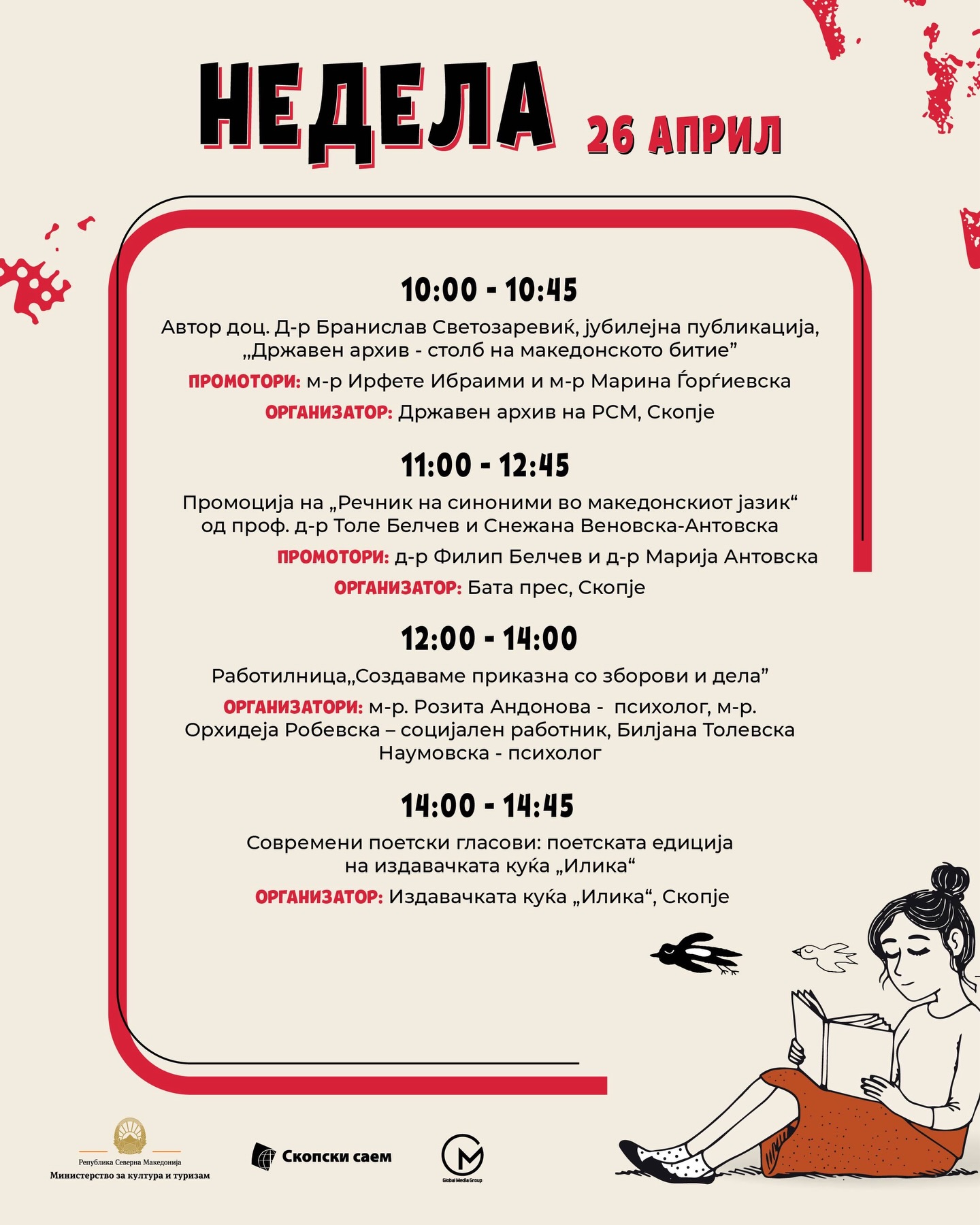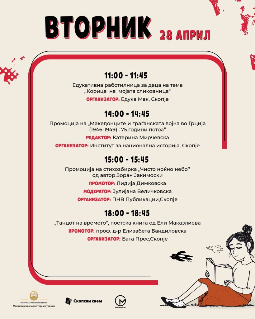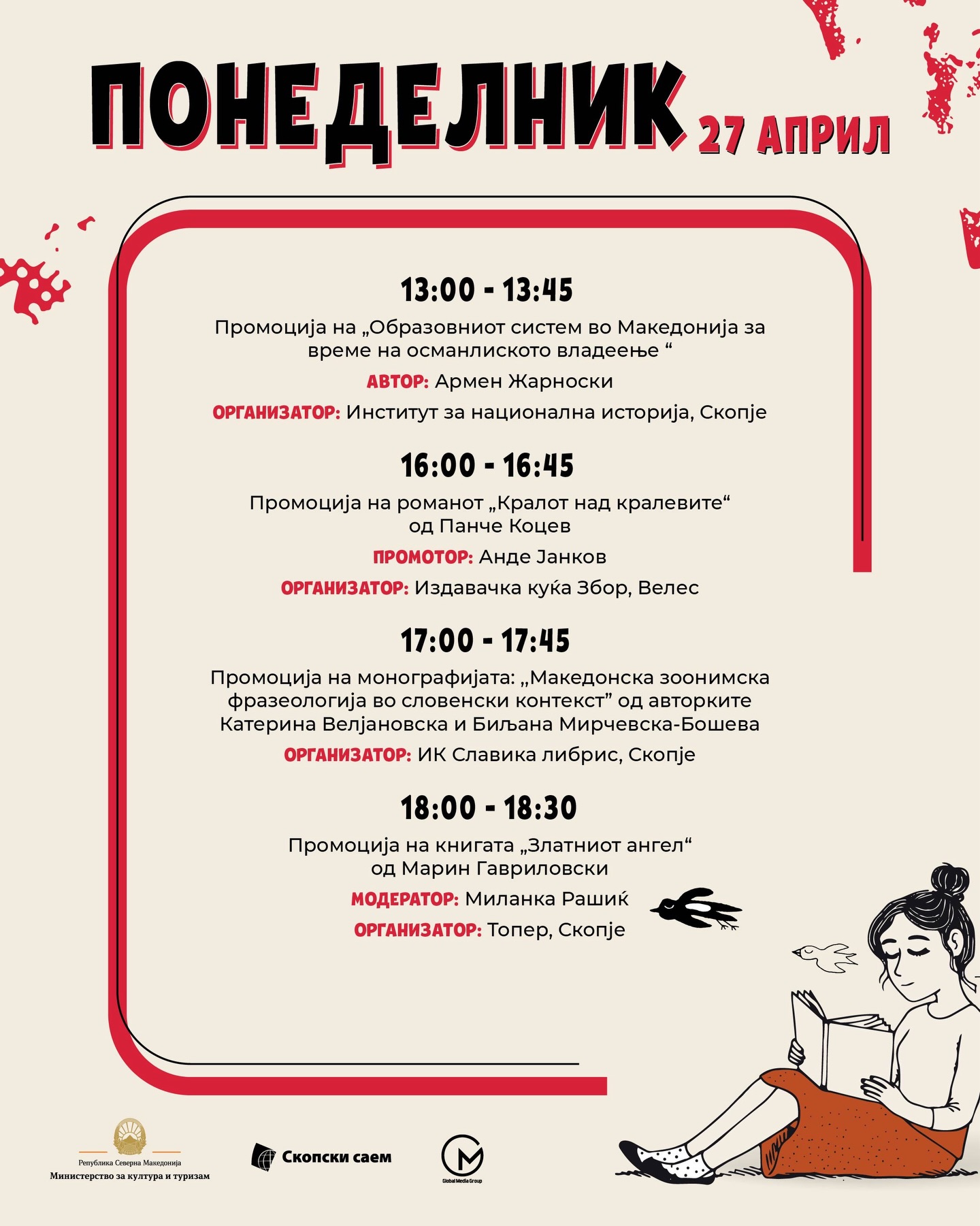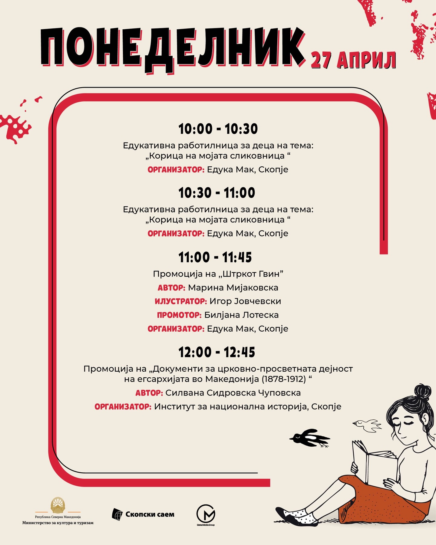 Денес, на Светскиот ден на книгата, започнува новото издание на Саем на книга! Овие неколку дена ќе бидат вистински празник и задоволство за сите љубител(к)и на книги. Од 23 до 29 април, во Арена „Борис Трајковски“ во Скопје ќе имате можност да поминете часови со вашите омилени книги и да додадете нови книги кон вашата домашната библиотека.